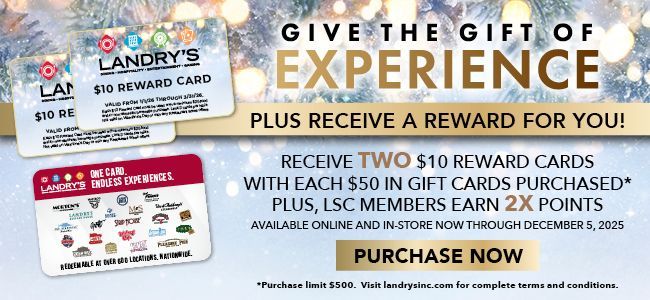 Plus, Landry’s Select Club Members Earn 2x Points! Available In-Store and Online Now Through December 5, 2025.