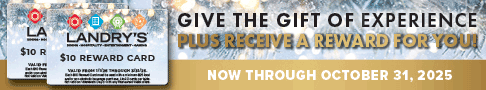 For Every $50 in Gift Cards You Buy, Receive Two $10 Reward Cards.* Plus, Landry’s Select Club Members Earn Points! Available Online Only Now Through October 31, 2025.